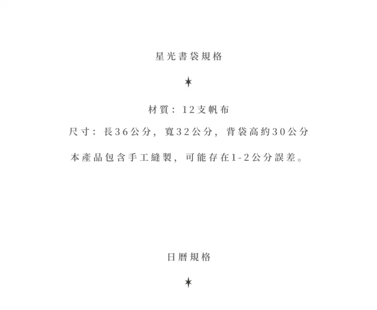 Scar Calendar 2026 植物傷痕曆 1030元 Book Bag 星光書袋(淺灰繡銀)780元 前台價格呈現有bug,請以上方公告售價為準 最後30本數量,售完為止。